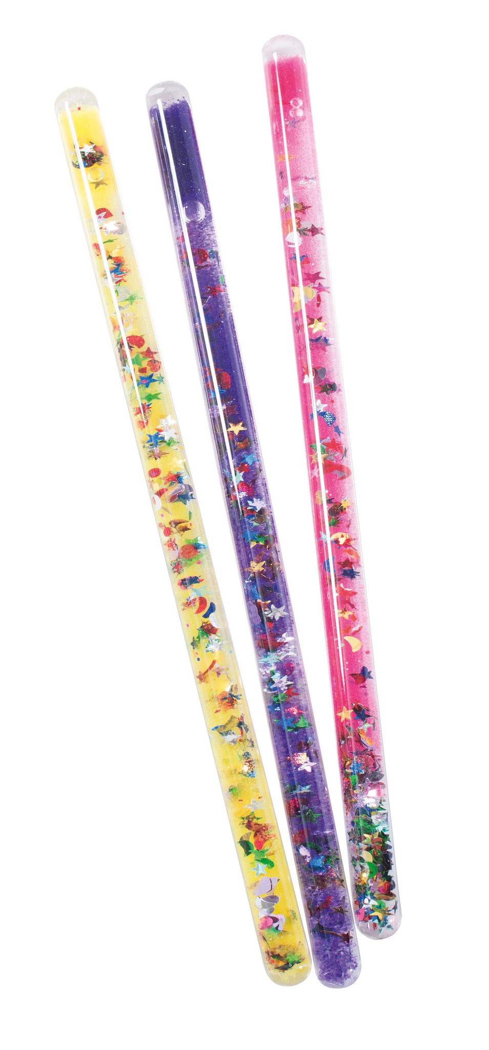 Esta varita trransparente deja ver en su interior estrellas, lunas y corazones flotando en color con destellos glitterw, y es el complemento perfecto de un hada, maga o hechicera.