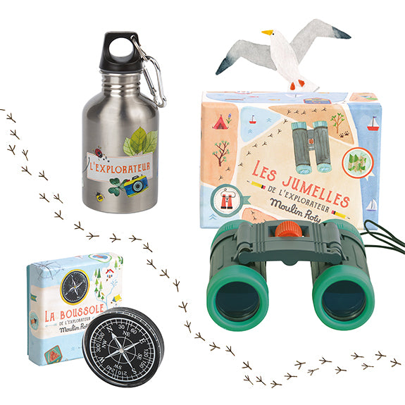 Ningún explorador que se precie saldría de expedición sin sus prismáticos. Sobre todo si son como estos, plegables, fáciles de manipular por las manos más pequeñas, resistentes y con un aumento de 8x para poder observar pájaros al vuelo.