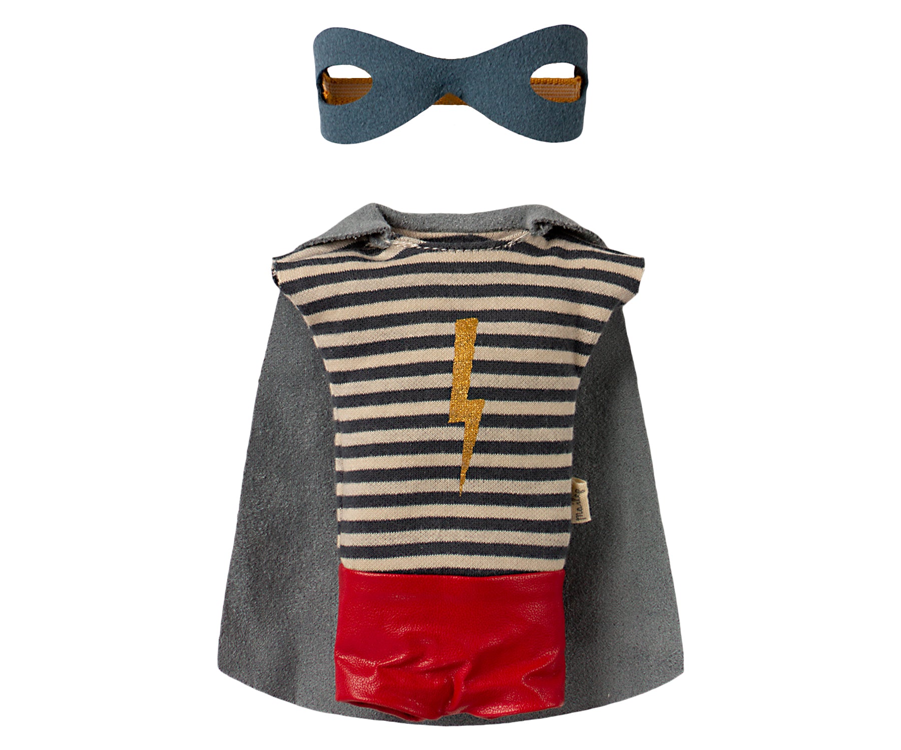 El tradicional ratoncito Maileg en tamaño medium y vestido con un traje muy especial: el de superhéroe listo para ayudar en cualquier situación. Combínalo con otra ropita tamaño medium mouse para cuando tu ratoncito esté de incógnito.