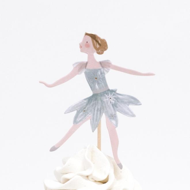 Este completo kit incluye 24 moldes en dos modelos diferentes y 24 toppers en seis diseños: Clara, el Rey de los Ratones, soldado, árbol de Navidad, el Hada de Azúcar y el Príncipe Cascanueces.
