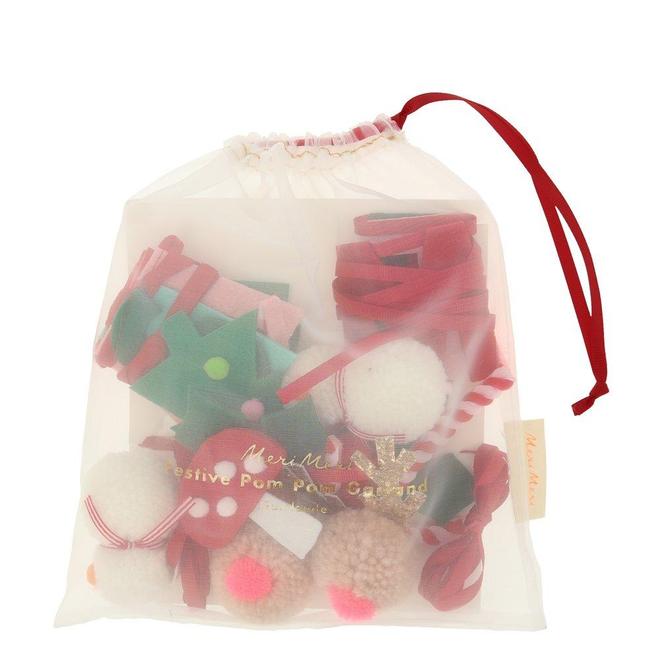 Esta festiva guirnalda de fieltro, con una mezcla de mensaje de texto MERRY CHRISTMAS e iconos navideños llenos de color, quedará genial en cualquier pared. Está confeccionada con mucho detalle, incluyendo pompones, y tela dorada brillante. Viene presentada en una bolsa de organza para que puedas guardarla para las siguientes navidades.