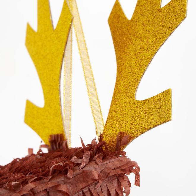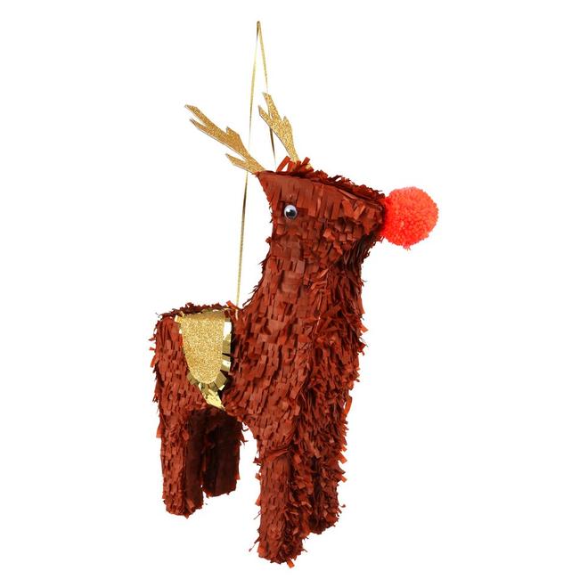 Esta piñata con forma de reno con su brillante nariz roja, es fantástica para un toque festivo extra. Una forma divertida y diferente de presentar pequeños regalos y dulces navideños. 56cm de alto para impactar!